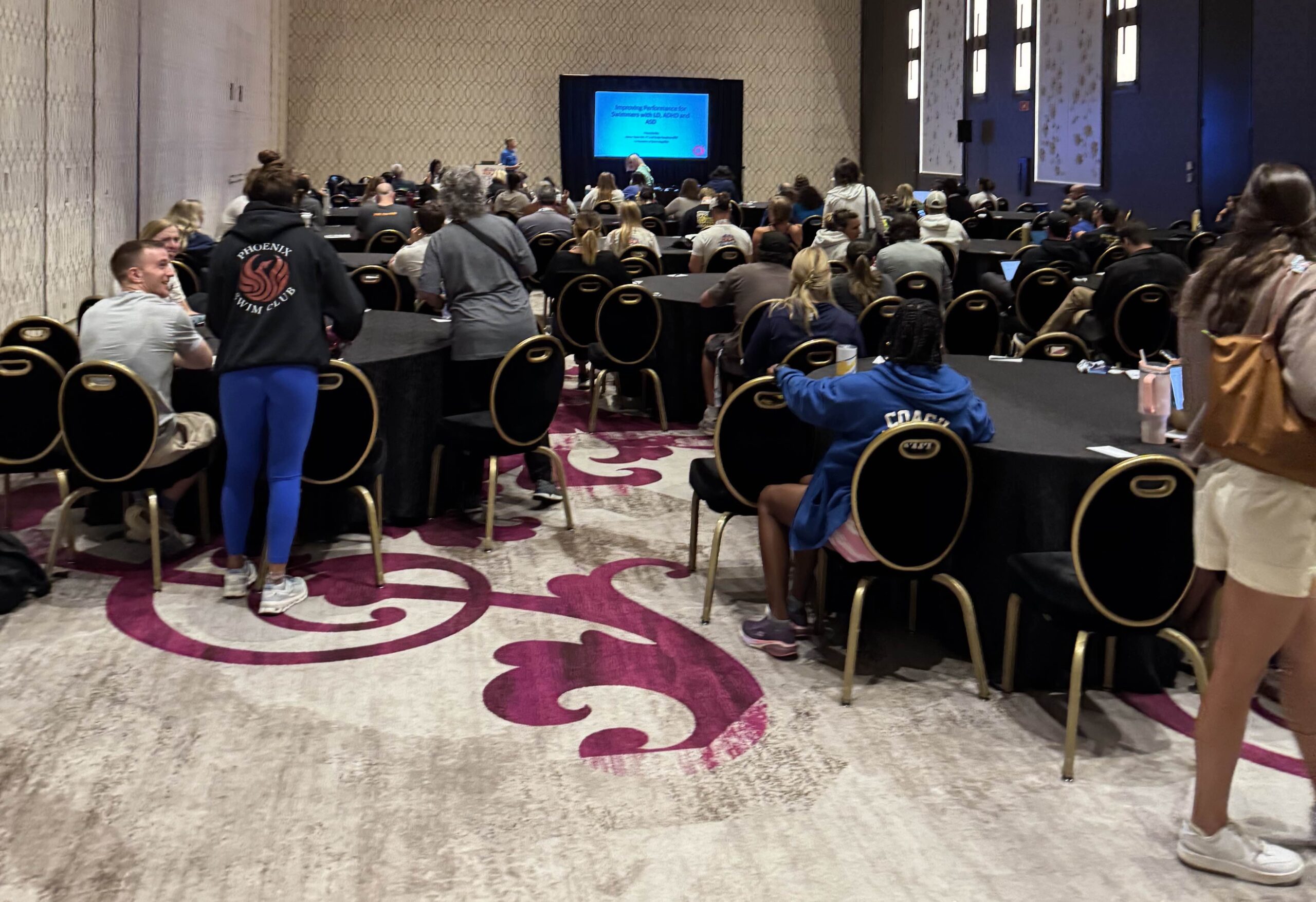 To add to the knowledge pool, we contributed a little something ourselves. Our presentation topic focused on how competitive swim coaches as well as learn to swim teachers can help swimmers with ADHD or Learning Differences improve their attention, resulting in improved swim technique. We were blown away by the packed room and the positive feedback we received from the audience.